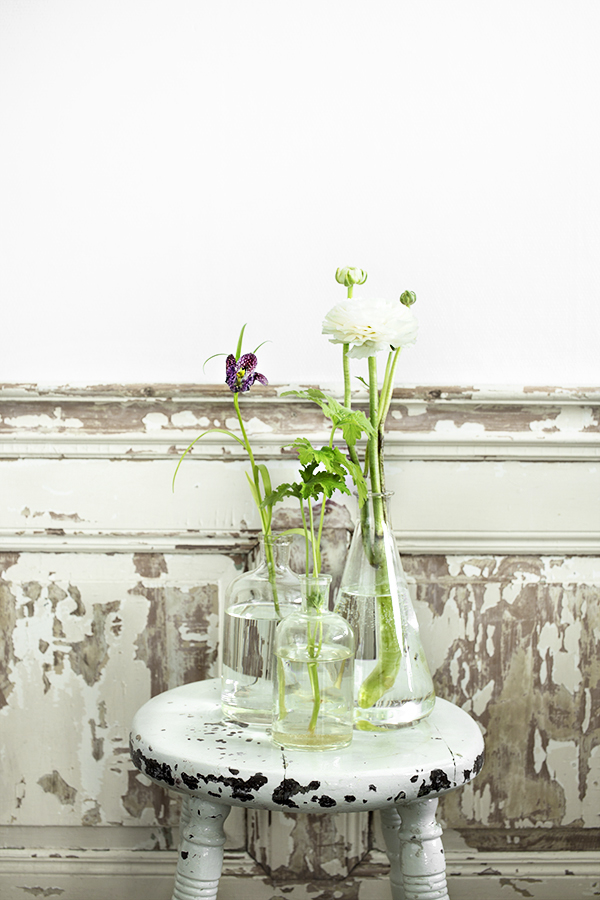 | Ranunkel och kungsängslilja ett enkelt stilleben, var sin gammal glasflaska och kolv och en skott från en Dr. Westerlund. Det behövs inte mer. Kram Sandra |